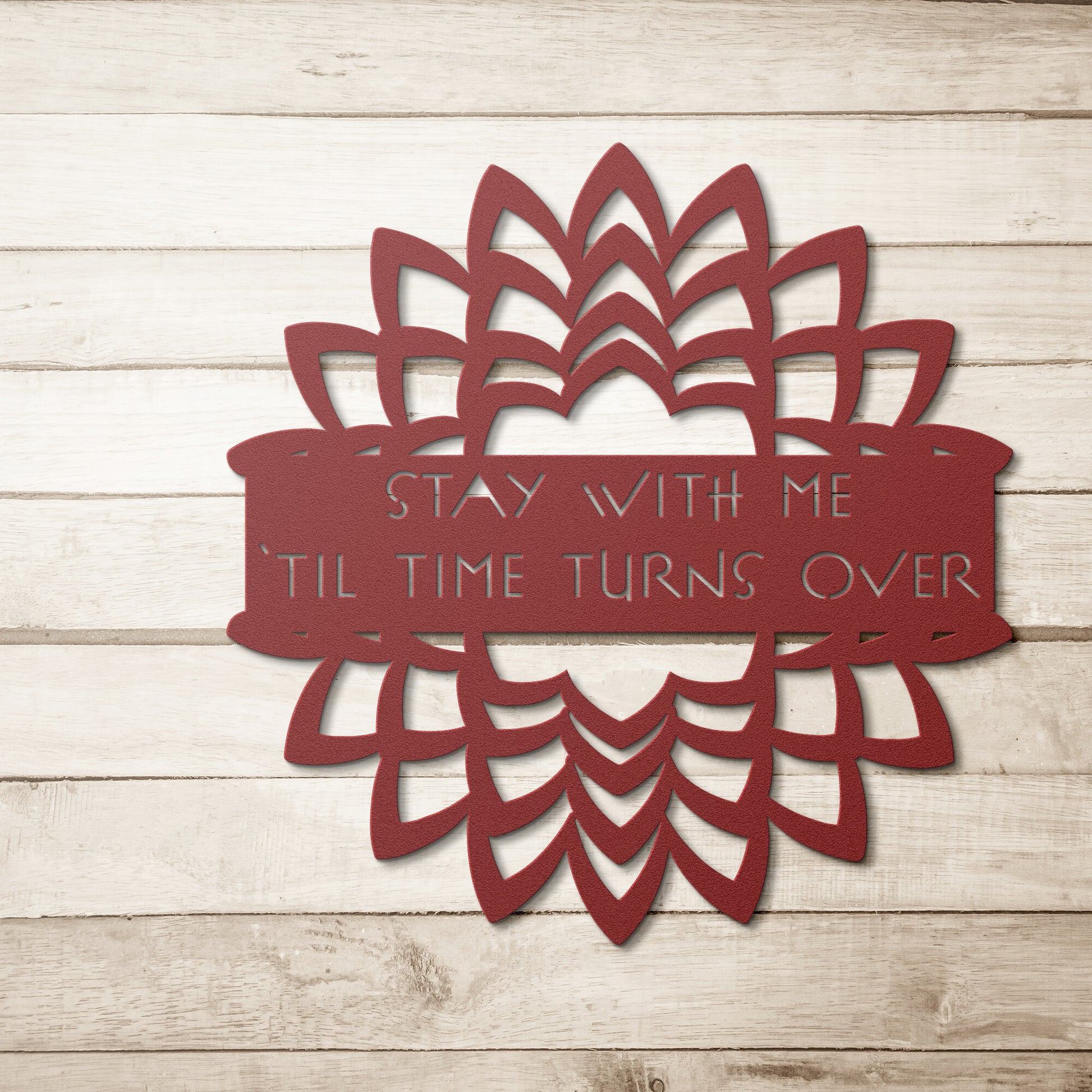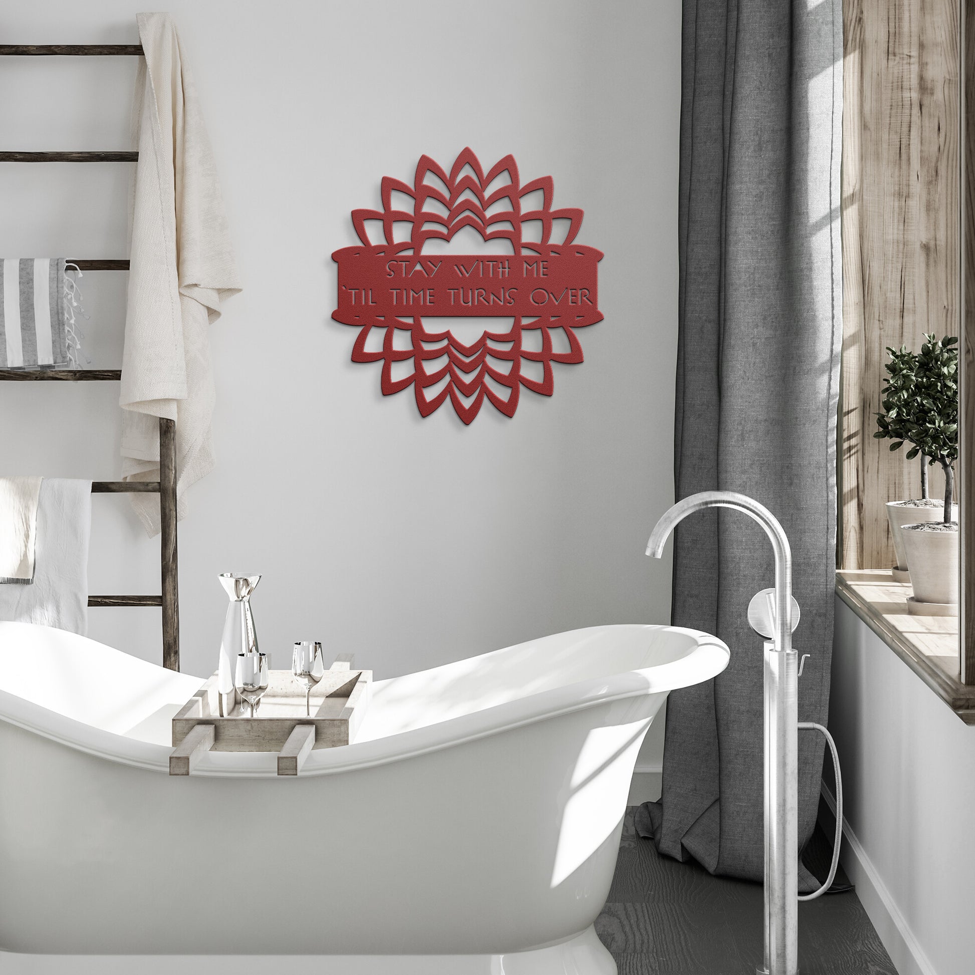 Our artwork is custom made for you at the time of your order out of 18-gauge steel and then powder coated in your choice of 5 colors. You get to select the size and color that will fit perfectly with your current home decor!